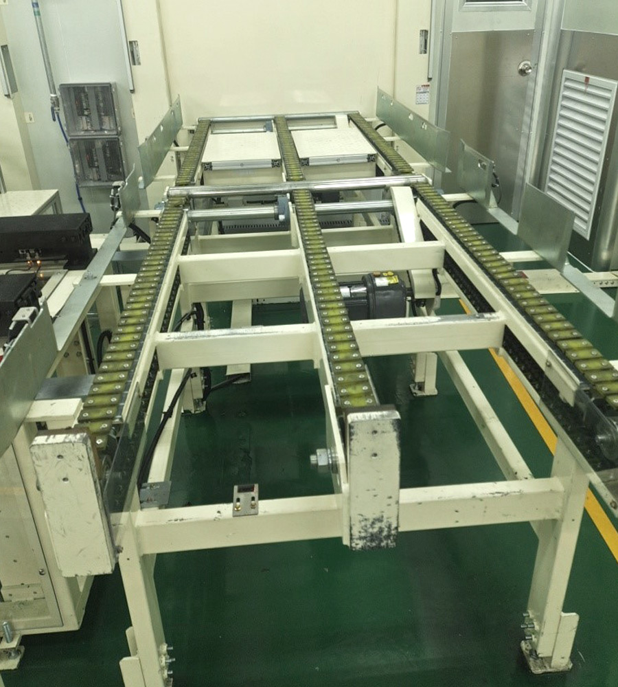 链条输送线也可称为链条线。链条输送线是以链条作为牵引和承载体进行输途物料的设备,链条可以朵用普通的套筒滚子输送链,也可朵用其它各种特种链条(如积放链,倍速链)。链条输送线主要输送托盘、大型周转箱等。